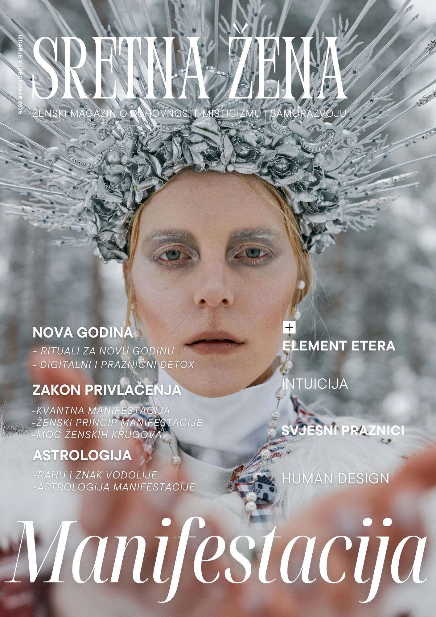 The Ether element was the thematic inspiration behind the fifth Sretna Žena Magazin digital issue, Manifestacija (Manifestation) cover below created especially for the holiday season. In the next post, I’ll share an exclusive interview with Leah Sonaria, Hathor Priestess.